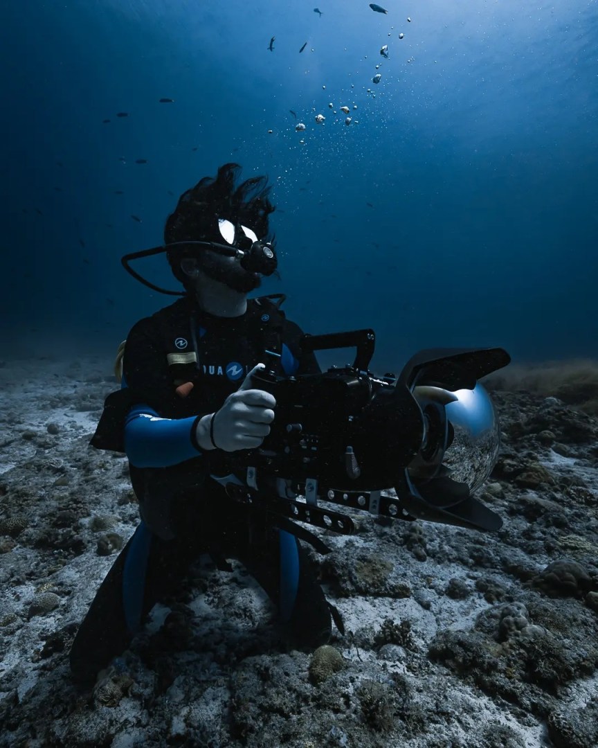 En parallèle, je collabore avec d’autres disciplines artistiques, notamment la danse et la musique. Je réalise des vidéos chorégraphiques et des clips musicaux qui enrichissent ma mise en scène du mouvement, qu’il s’agisse de corps humains en suspension ou de la fluidité des formes animales sous-marines.